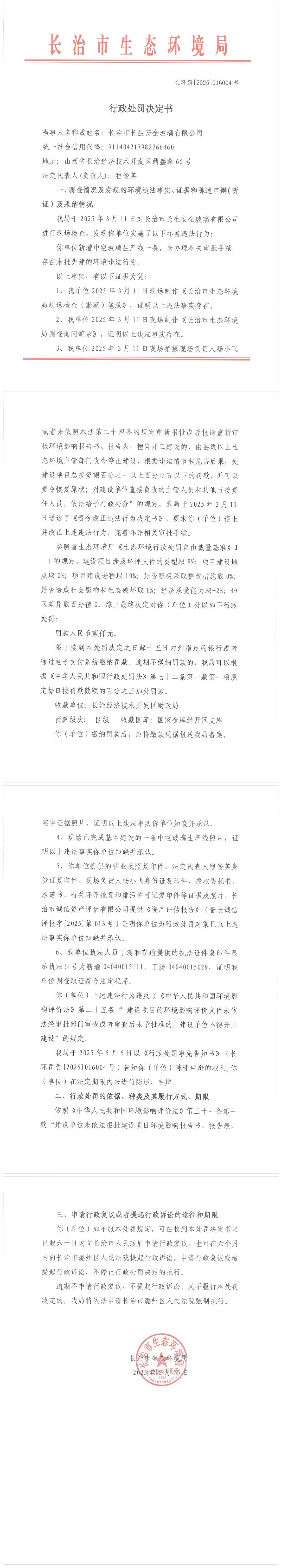 长环罚【2025】016004号